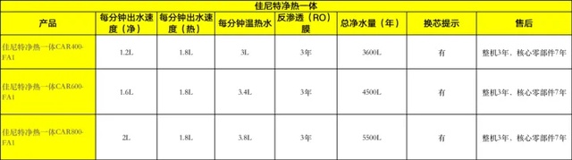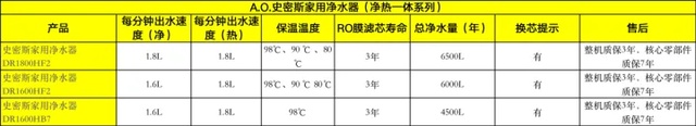 净热一体系列是A.O.史密斯家能同时提供净(冷)水和热水的净水器,为了方便阅读,我对表格进行了部分调整,但不影响整体选择。