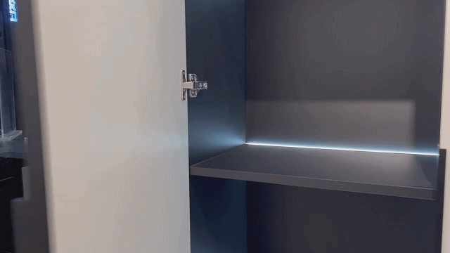 现在市面上的铰链悬停、缓冲基本都能做到,差异是,进口铰链的悬停回弹位置最小可以做到2°~5°,就算开的缝隙小,也不怕夹手;国产铰链的基本在10度左右,开缝还是会大些。