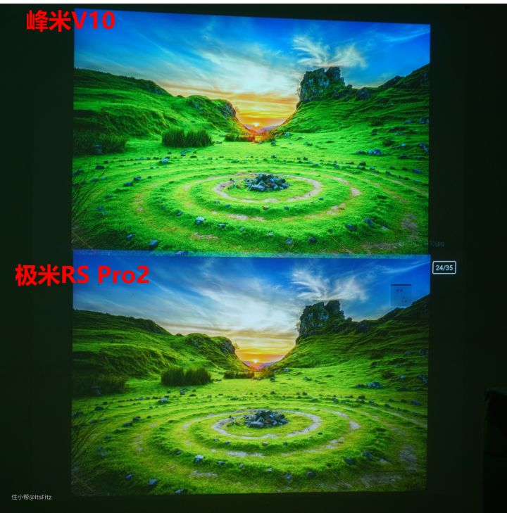 各位知友也可以通过下方的图片感受一下峰米 V10和极米RS Pro 2的色彩表现差异。