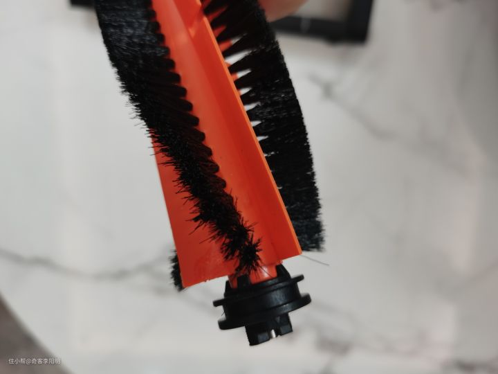 毛刷采用的是卡扣式设计、轻松装取。毛刷的优点是清扫效果好、缺点就是可能会有点缠绕毛发。
