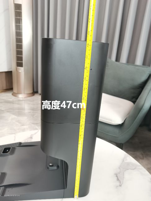 集充电和集尘一起、统称为自动集尘站。集尘度高度为47cm、坡度目测10度左右、体积上并不小巧、但摆放在客厅的角落也并没有违和感。(选好位置后不要轻易挪动)