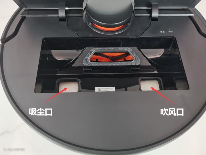 尘盒取出后、可看见“吸尘口“和”吹风口“、这点跟追觅的集尘设计是一样的、采用的是”一吸一吹“方式、能更有效地把垃圾吸到集尘袋里去。