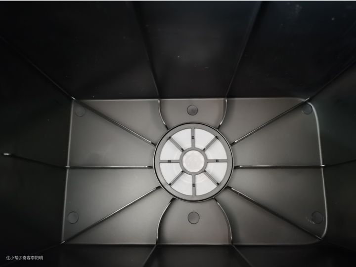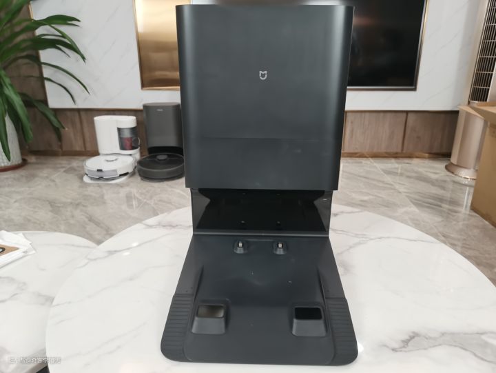 米家和追觅的自动集尘的设计是一样的、采用的都是“双风道”设计、配合16500pa的大吸力、左边吸尘右边吹的循环设计、使得尘盒清理的更干净。