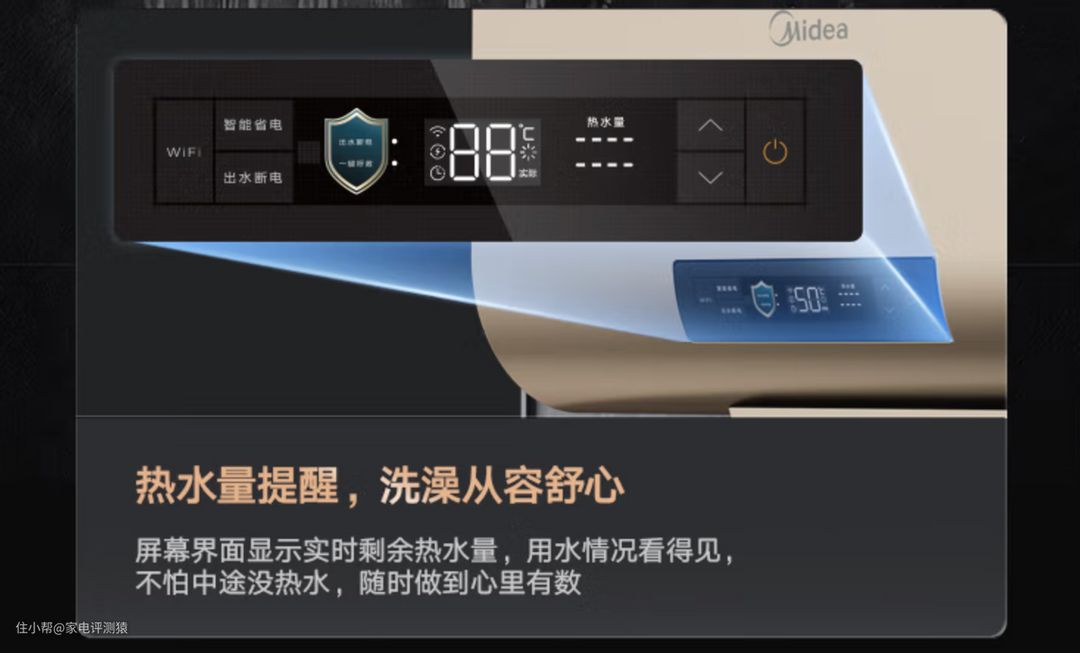 同时在大屏中可以实时看到热水剩余量,随时做到心里有数,杜绝热水澡变冷水澡的问题出现!