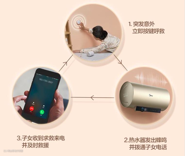 洗澡过程中,浴室空气湿度急剧增加,地面也更湿滑,所以浴室是老人跌倒的重灾区。由于浴室良好的私密性和花洒水流声,导致求救呼喊声难以向外传达,从而错过了最佳的救助时间。而美的美颐享这款CA7热水器的一键呼救功能可以很好解决这个问题!