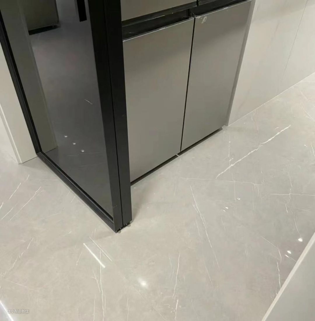 落地的时候注意:玻璃门的总体宽度要跟装完门套的宽度相等,否则就会如图,门套比玻璃门宽,逼死强迫症。还不如不装门套的效果。