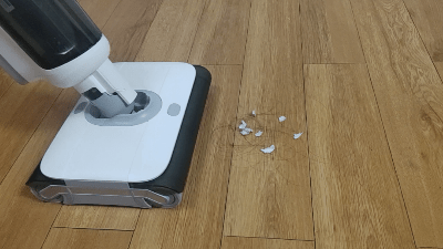Z10采用了双向贴边8mm设计,可以很好的贴合墙边死角缝隙,将墙角垃圾清理干净。我也专门对边角清洁做了实测。