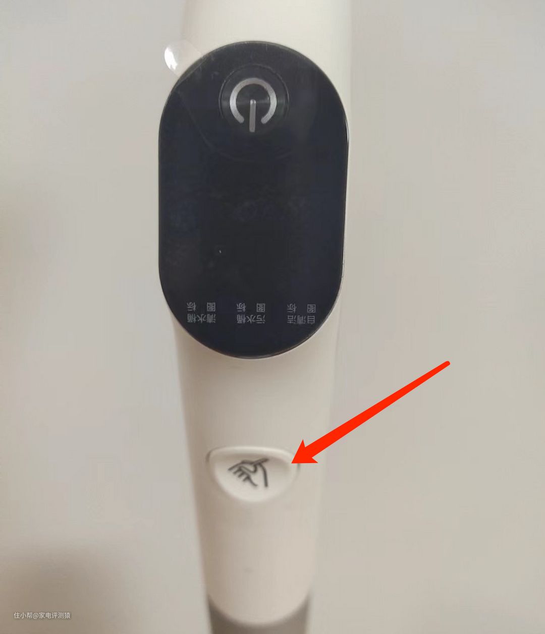 主控按钮都是在手柄上的,手柄正面有一个开关键和自清洁键,背面则是模式选择键,以及一个多功能键(长按三秒可以联网,短按则是把语音提示静音)