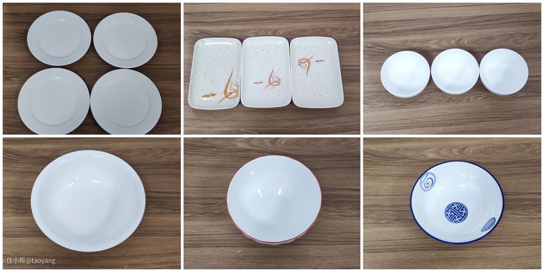 第二种类型是中型餐具,包括我做菜、盛菜留下来的碟子,大大小小碟子加起来也有六七个。