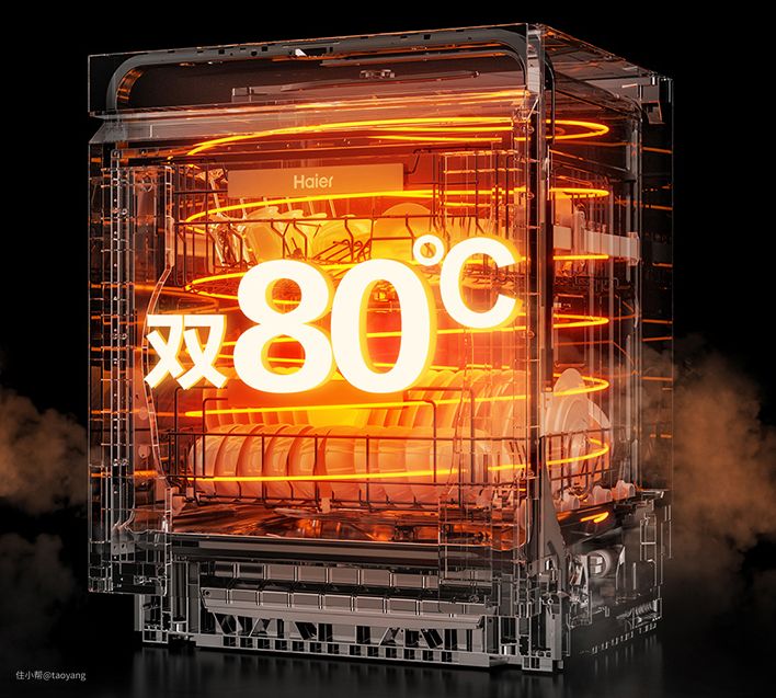 其次就是领先行业的80℃蒸汽变温技术了,一般的洗碗机在洗涤时,温度一般也就能达到70℃,对比之下,海尔W5000的洗涤温度领先行业10℃,优势明显。