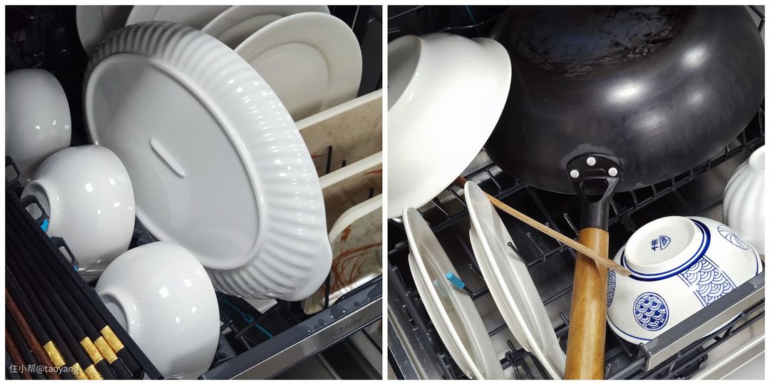 关键还得看看平底锅、锅盖、大碗这些大型餐具的洗涤情况,因为放在下碗篮,如果是一般的洗碗机,平底锅的底部就会出现洗不干净的情况了。