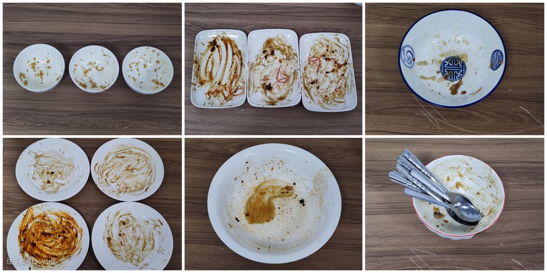 碗上残留的饭粒,菜碟子上残留的酱汁、油渍、污垢,大碗上还有残留的汤汁、面条,加上这餐具我放了有段时间,实话说,还是有一定的洗涤难度的。