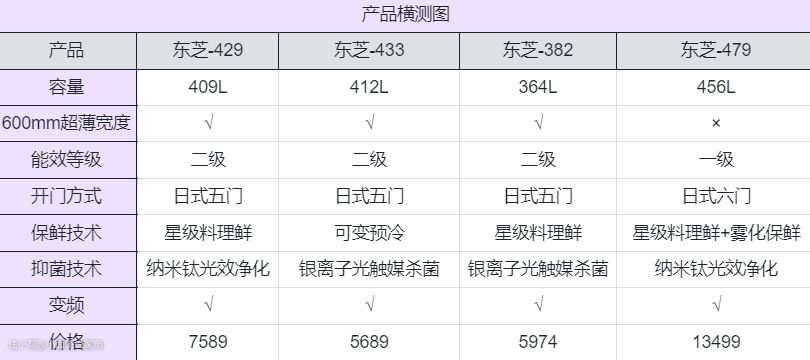 429和479是东芝的主推款产品,都有搭载星级料理鲜和纳米钛杀菌技术,功能性上非常优秀。429能在7K的价位搭载两门特色技术其实十分难得,再加上429的各项基础配置都非常厚道,就性价比而言无疑是四款产品中的最优解。