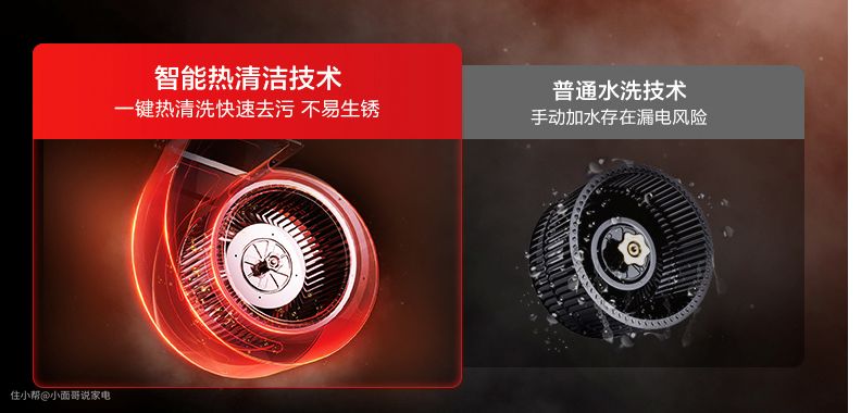 清洁方面:采用三体直净系统,升级热水自动洗,可有效强力瓦解顽固油渍,让油烟机继续保持强劲吸力和延长使用寿命。