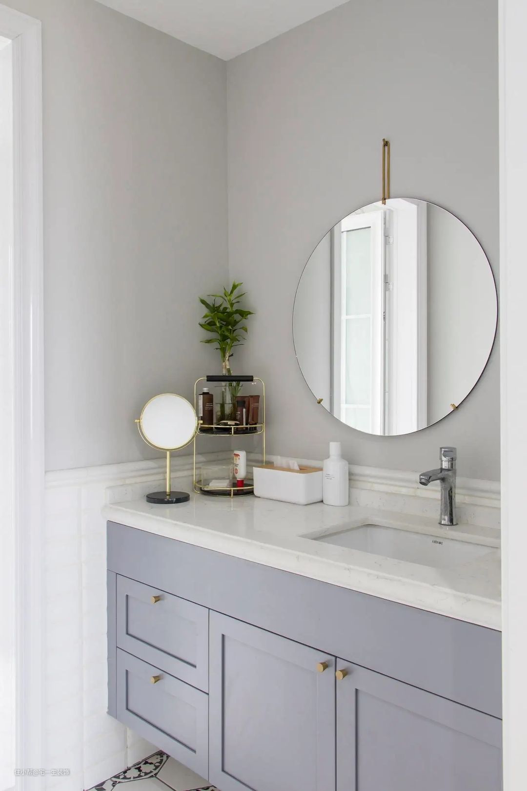 解决方法也不难,洗手盆外置,借用过道区域设计,原来的卫生间只容纳淋浴区、马桶,这样空间就会舒服很多。