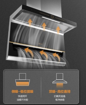 可以说目前的侧吸式吸油烟机可能是整体吸烟效果最好的吸油烟机产品,但它也有不足之处,那就是侧吸式结构比较占墙面位置,如果你喜欢颠锅就不太方便