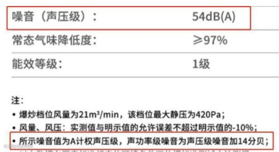 这里说的噪音给人的实际感受是A声功率级的分贝数值,大部分商家为了让分贝数值看上去数值低一点,标的是声压级的数值,所以不要很傻很天真地相信广告词中的“超静音”,记得要看清楚下图中我圈红的小字。