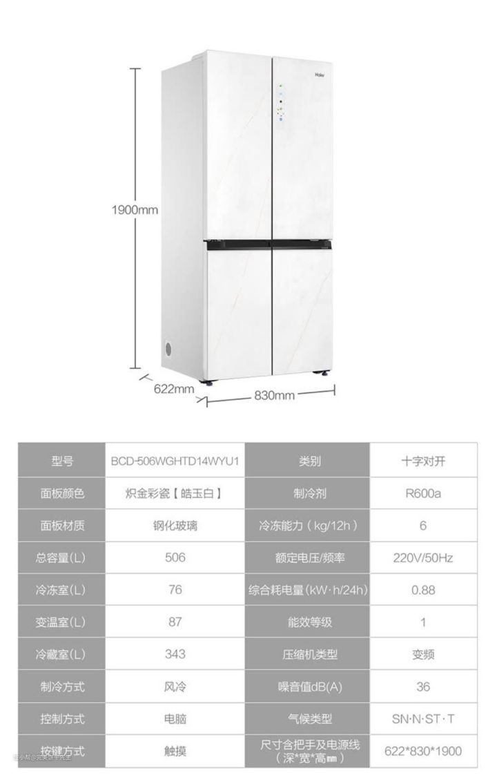 先来看几个关键数值:506L、双循环、风冷、变频,完全满足冰箱基本素质。