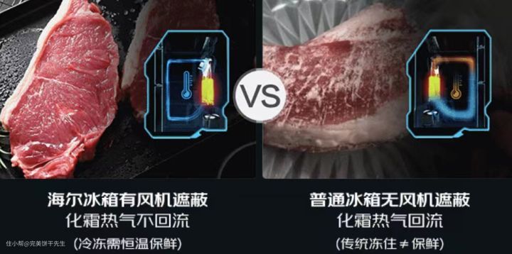 举个最简单的例子,普通冰箱没有风机遮蔽,往往会导致热气回流导致食物化霜,这就是为什么普通冰箱冷冻的肉总是梆梆硬的原因,吃的时候还总是要提前解冻,非常地麻烦;而搭配了这种冷冻技术的海尔冰箱,里面有风机遮蔽,有限避免了化霜热气回流,实现了食物恒温保鲜,想吃的时候随时取就行,也算是变相节约了生活成本了~何乐而不为呢?
