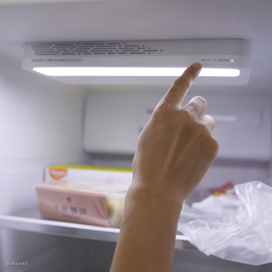 对了云米这台冰箱内置了AFF全区域净味模块,只需要在智能大屏或者手机APP上一键操作即可净味,18分钟就可净化分解食材异味,持久保持内部清新,让宝宝食欲更好。