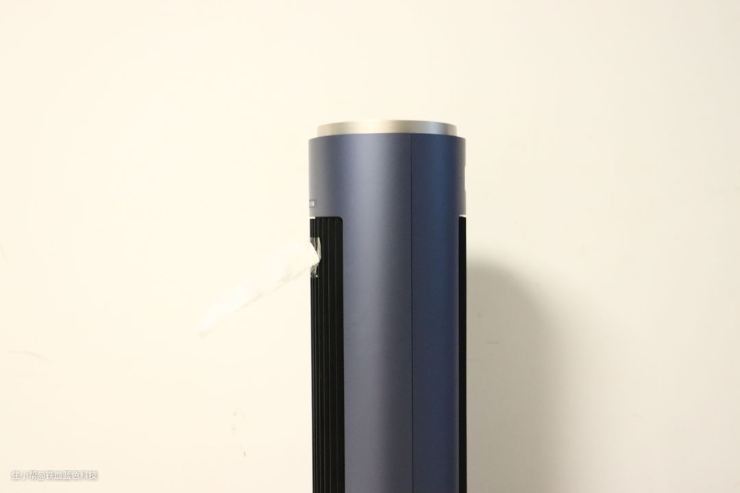 造梦者无叶净化冷暖扇造型设计较为出色。采用当下比较流行的圆柱型设计,相对普通风扇来说,精致而且不占地。配色方面的话也非常高端,机身跟底座采用了深蓝色设计,顶部操作面板上使用了纯黑色面板+一圈香槟色作为点缀,能很好的融入家居风格。此外,出风口的格栅为防夹手格栅,对于家中有小孩的也不用担心安全问题,进风口为PET过滤网,可以有效过滤进风口灰尘毛发,让用户享受更加健康的空气质量。