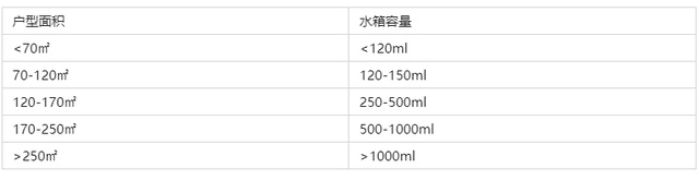 清水箱的容量选择至关重要。如果清水箱容量过小,意味着在使用过程中我们需要中途添水;但是如果清水箱容量过大,使用时会觉得累手且操作困难。因此,清水箱容量的选择主要取决于家庭的户型面积。这里提供一张表作为参考: