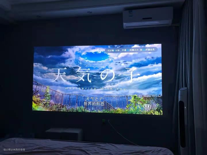 另外短焦投大屏设计,让投影仪距离墙面2.5米即可投映100英寸的大屏幕,对于屋子面积比较小的不要太友好;