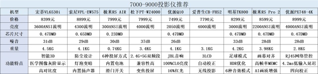 7000-9000元区位的投影仪属于高端产品了,挑选了几款代表产品供大家参考选择。
