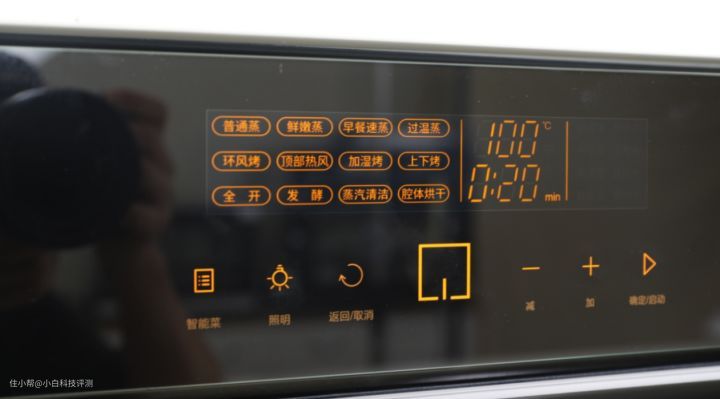 烹饪功能上,有4种蒸模式(早餐速蒸、鲜嫩蒸、普通蒸、过温蒸),分别可以应用于蒸蛋、蒸早餐面点、蒸鱼、消毒奶瓶等等;烤的话也有环风烤、顶部热风烤等7种专业烤模式,有烘焙经验的人可以根据方子,选择不同的温控模式,LED触控的操作面板,操作灵敏,功能按键显示清晰,老人家也能看得清楚各个功能!