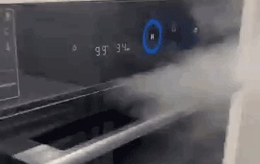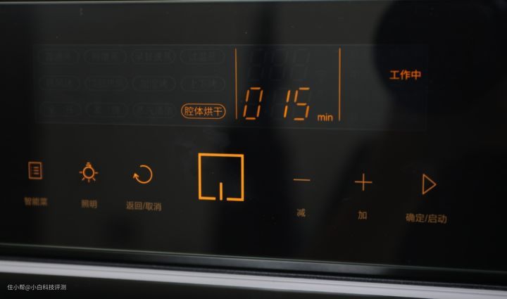 蒸过鱼的烤箱内部全都是水,我们可以选择腔体烘干程序,过程中可见门壁上水雾逐渐消失,最后腔体内毫无水渍!