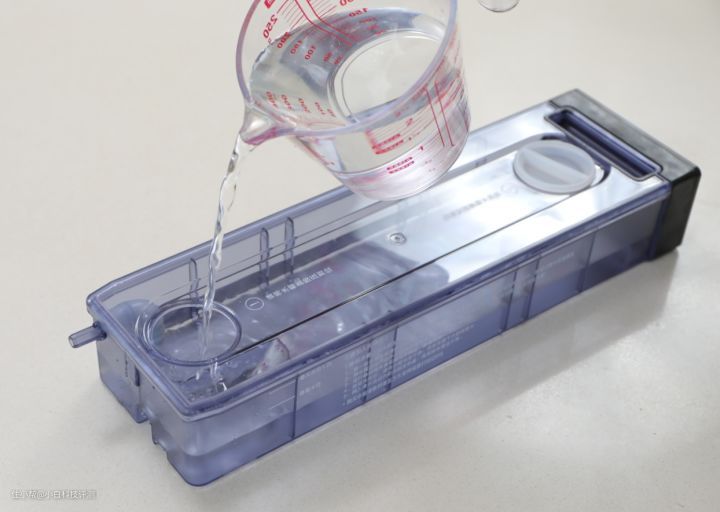 步骤:水盒注水,不要超过1.2升,要使用纯净水避免产生水垢推入卡槽,听到啪嗒一声即可,取出时摁压一下,啪嗒一声即可弹出水盒。