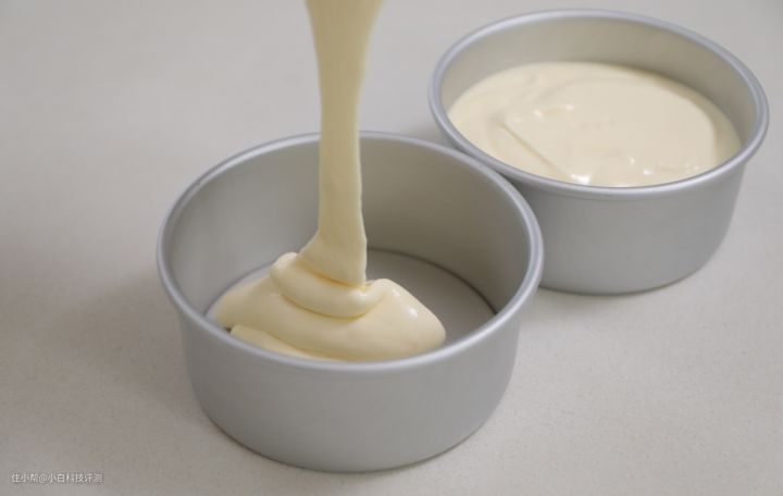 1.步骤:鸡蛋3个蛋白蛋黄分离,把牛奶35g和植物油35g加入3个蛋黄里,搅拌均匀,过筛加60g低筋面粉,搅拌顺滑,蛋白3个加柠檬汁2g,再加55g细砂糖,高速打发,直到硬性发泡,取三分之一蛋白霜与面糊混合,倒回剩余三分之二蛋白霜里,翻拌均匀,倒入模具7成满。