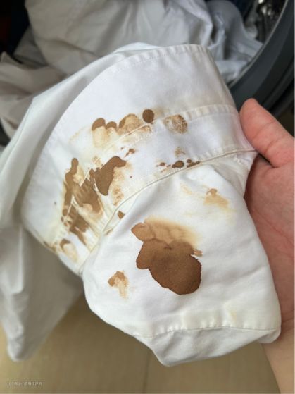 去污测试:我在白衬衫衣领部分涂上大量的酱油,为了极限测试,等酱油干之后再放进洗衣机清洗。大家都知道,酱油干之后真的又硬又脏,特别难清除掉就算是手洗也要费好大功夫。