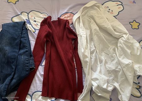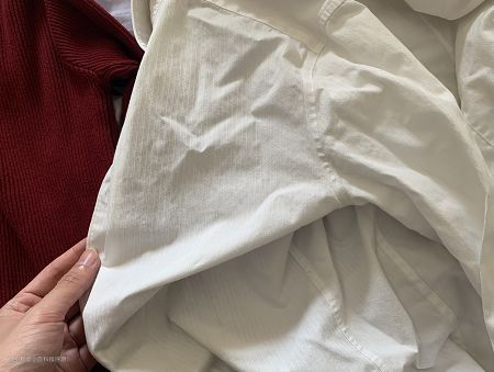 我拿了几件深色的衣物和白衬衣一起洗,看看会不会串色,可以发现衬衫丝毫没有串色痕迹。