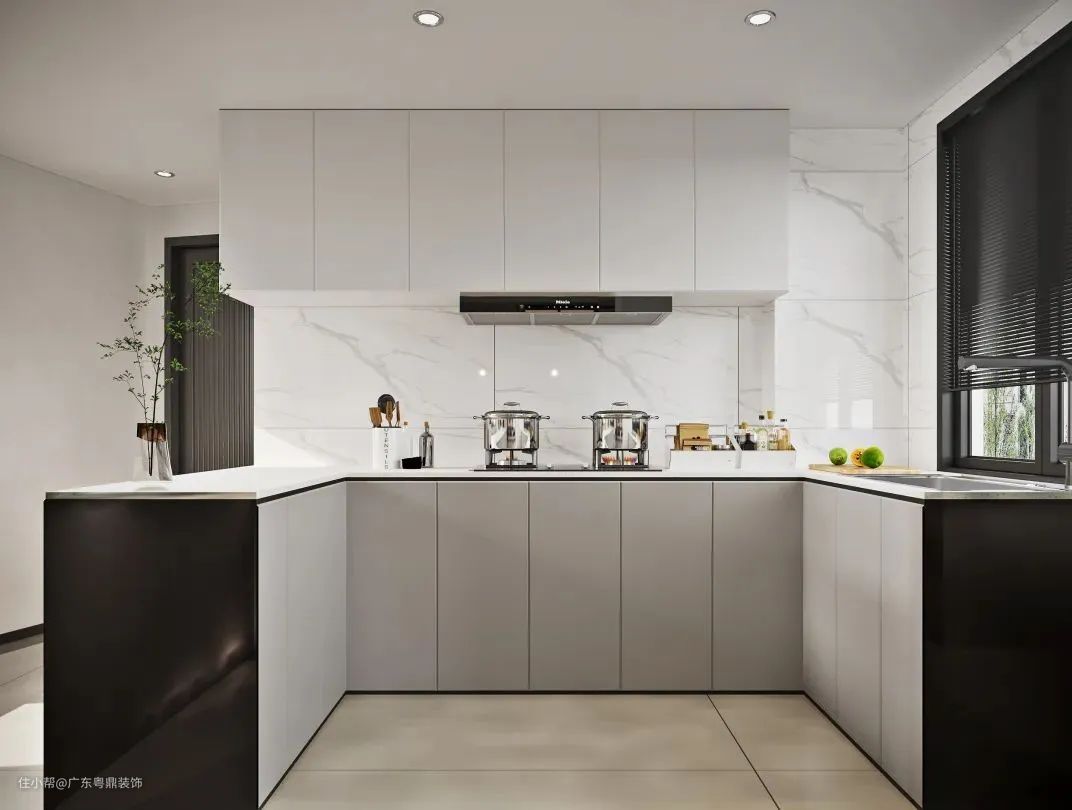 厨房作为一日三餐主阵地,承载着一个家庭对于幸福生活的想象,厨房位于玄关侧面,是一个开放式厨房,墙面贴有白色的瓷砖,整体的感觉结合灯光,使得整个空间采光都非常光亮,而且空间也显得宽敞很多。