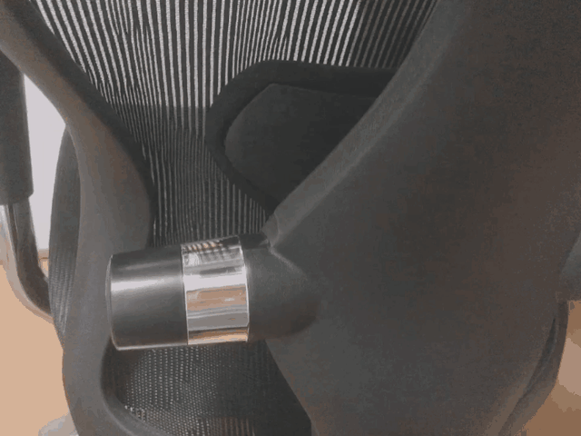 划重点:一定要坐在椅子上、根据具体的支撑感去调整腰托、采用的是从左到右的旋转方式、轻松调整。(人体工学椅的毫米效应很明显)。
