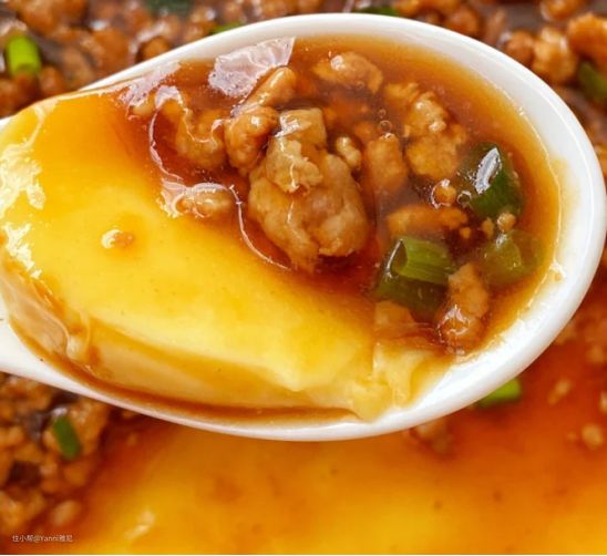 烹饪过程:把肉沫放深煮锅里翻炒至变色,倒入一勺生抽调味,翻炒均匀就盛出碗里备用;接着将3个鸡蛋都打散,放入一点盐、一点香油、倒入适量的水,放锅里调最大档,蒸10分左右,蒸好后倒入肉沫,撒葱花,再淋点香油在上面就可以啦,鸡蛋这样蒸,吃起来比豆腐还要嫩呢!
