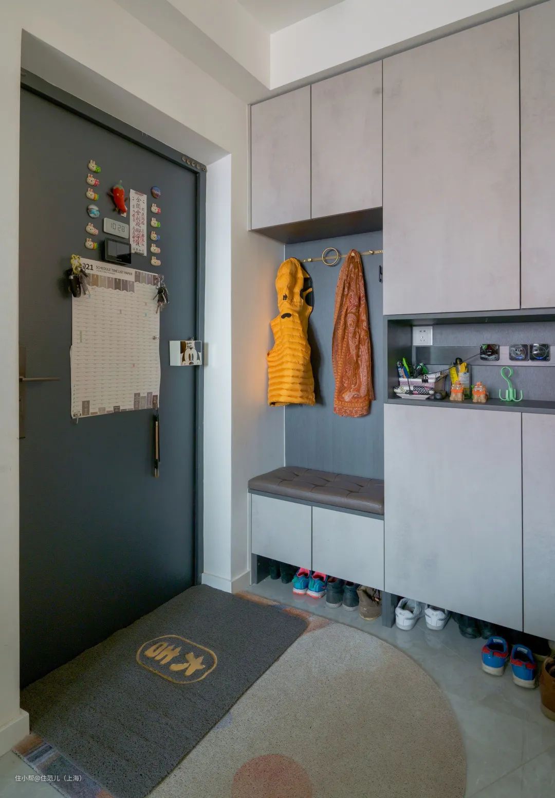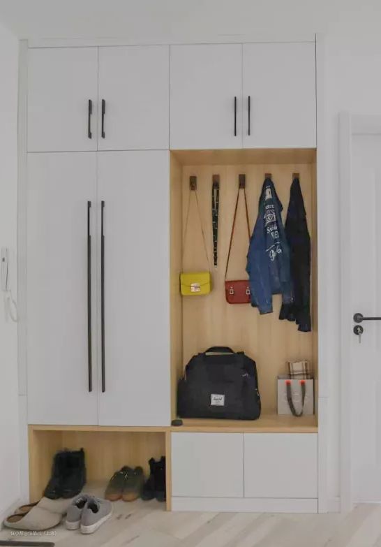 空间不够,可以做玄关柜,除了放鞋子,也要把次净衣收纳考虑进来。