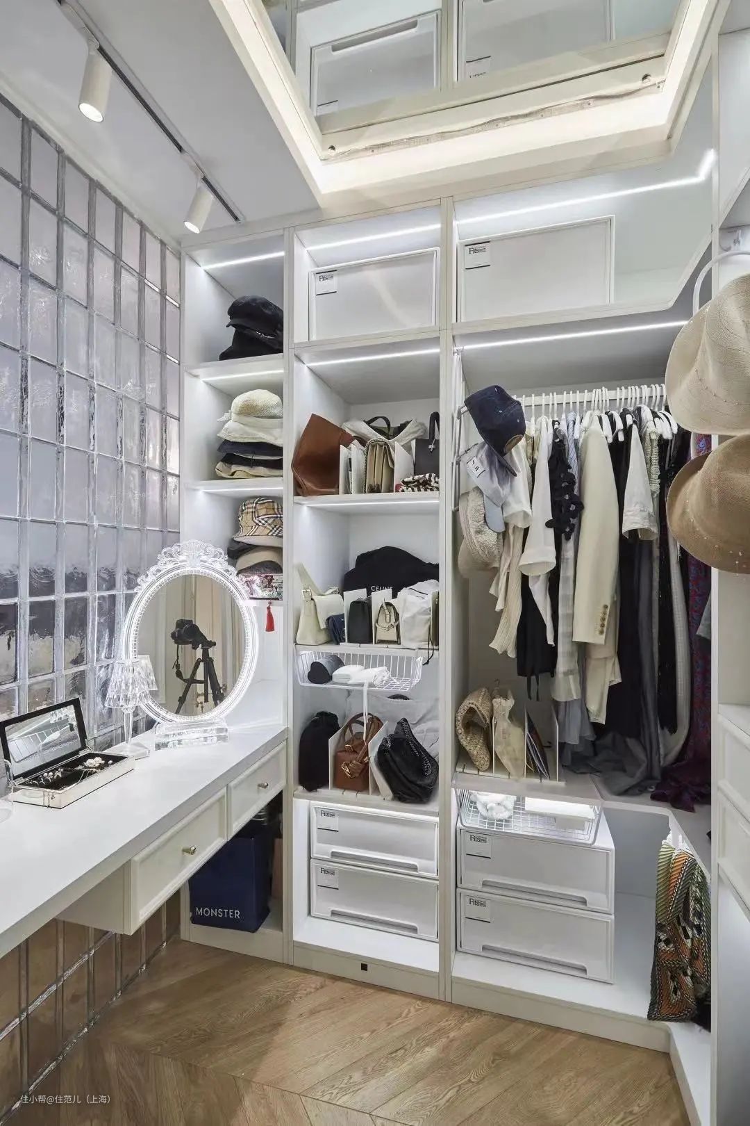 设计衣柜时提前考虑次净衣收纳,空间够就留有一部分开放区域。