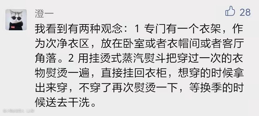 大家对次净衣(隔夜衣)问题很关注,讨论非常多,还有粉丝给出了自己的收纳方法。