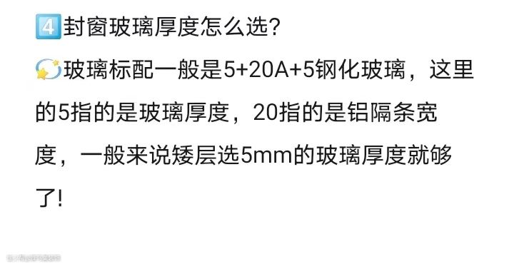 第四就是玻璃厚度,选择优质中空玻璃,原片是浮法玻璃,标准厚度是5mm