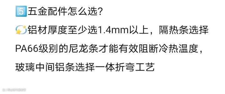 最后就是五金配件了,至少厚度要达标,然后要保证室内外的温度隔断,以免温度太高房子里面太热,温度太冷导致屋内太冷;要保持室内恒温