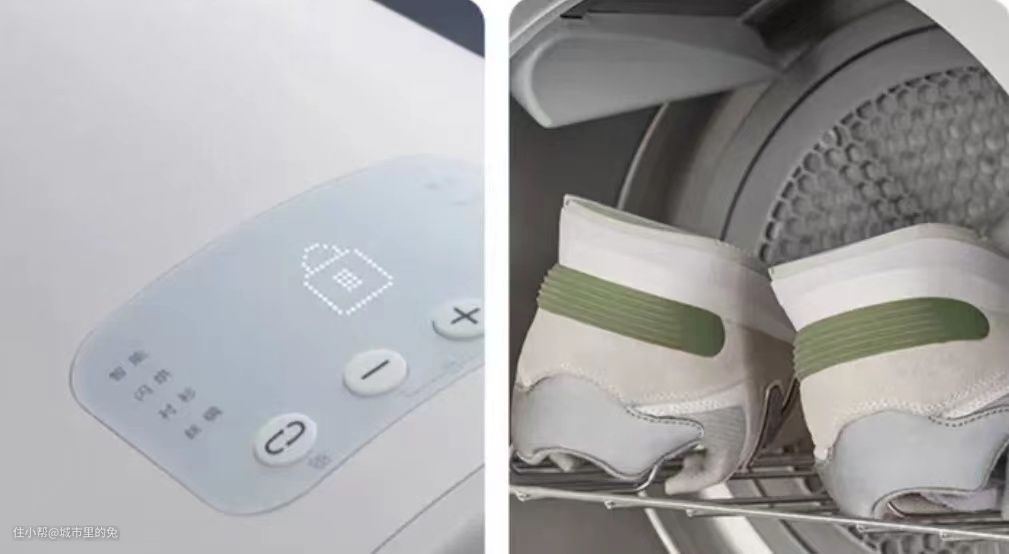 烘鞋功能:冬天洗毛绒拖鞋和运动鞋,经常晾晒就要十天半个月,有时候天气下雨鞋内滋生霉菌还得再洗一次,而烘干机1小时左右就能烘干,非常方便。不过烘鞋功能并不是烘干机的普遍功能,如果把鞋子放入没有烘干功能的机器中,很容易造成鞋子变型或开胶。