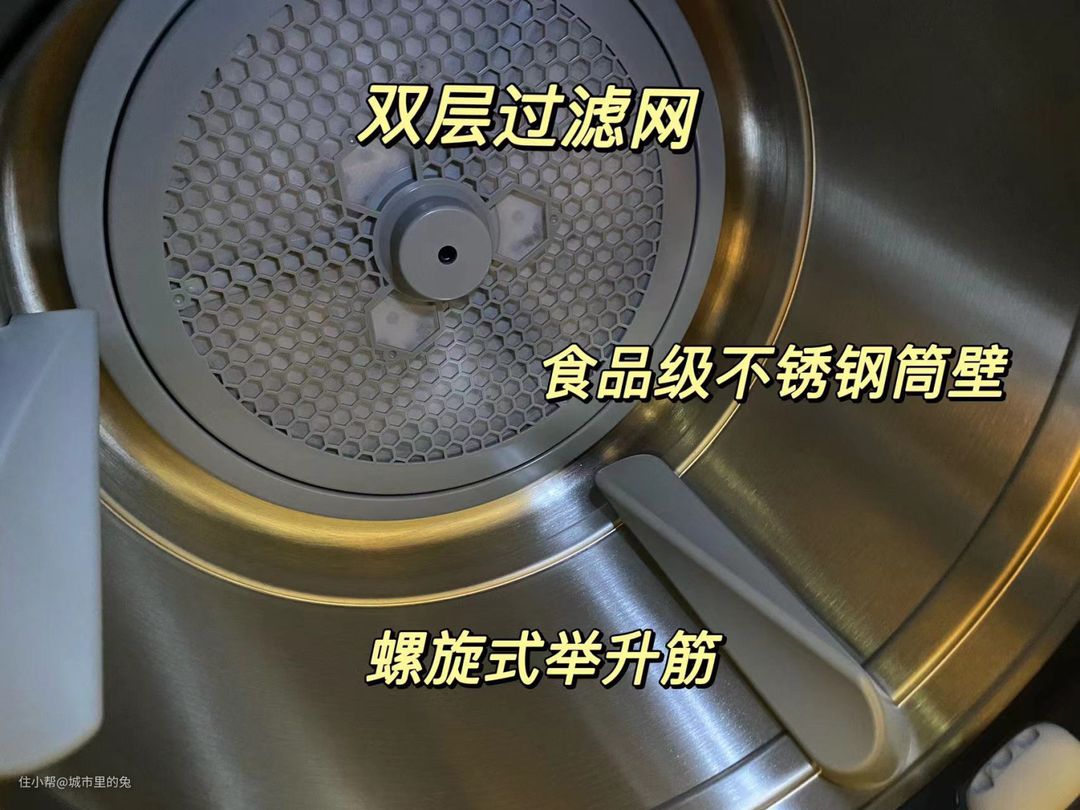 内部设计和用料也很走心,单单过滤网就是双层磁吸式,不仅过滤绒毛效果好,磁吸式可拆卸设计也很方便清洁,滚筒的内部也置有UV紫外灯,做到烘干的同时进行除菌。食品级不锈钢桶壁能能防止衣物在滚动时划伤,处处体现着细节。