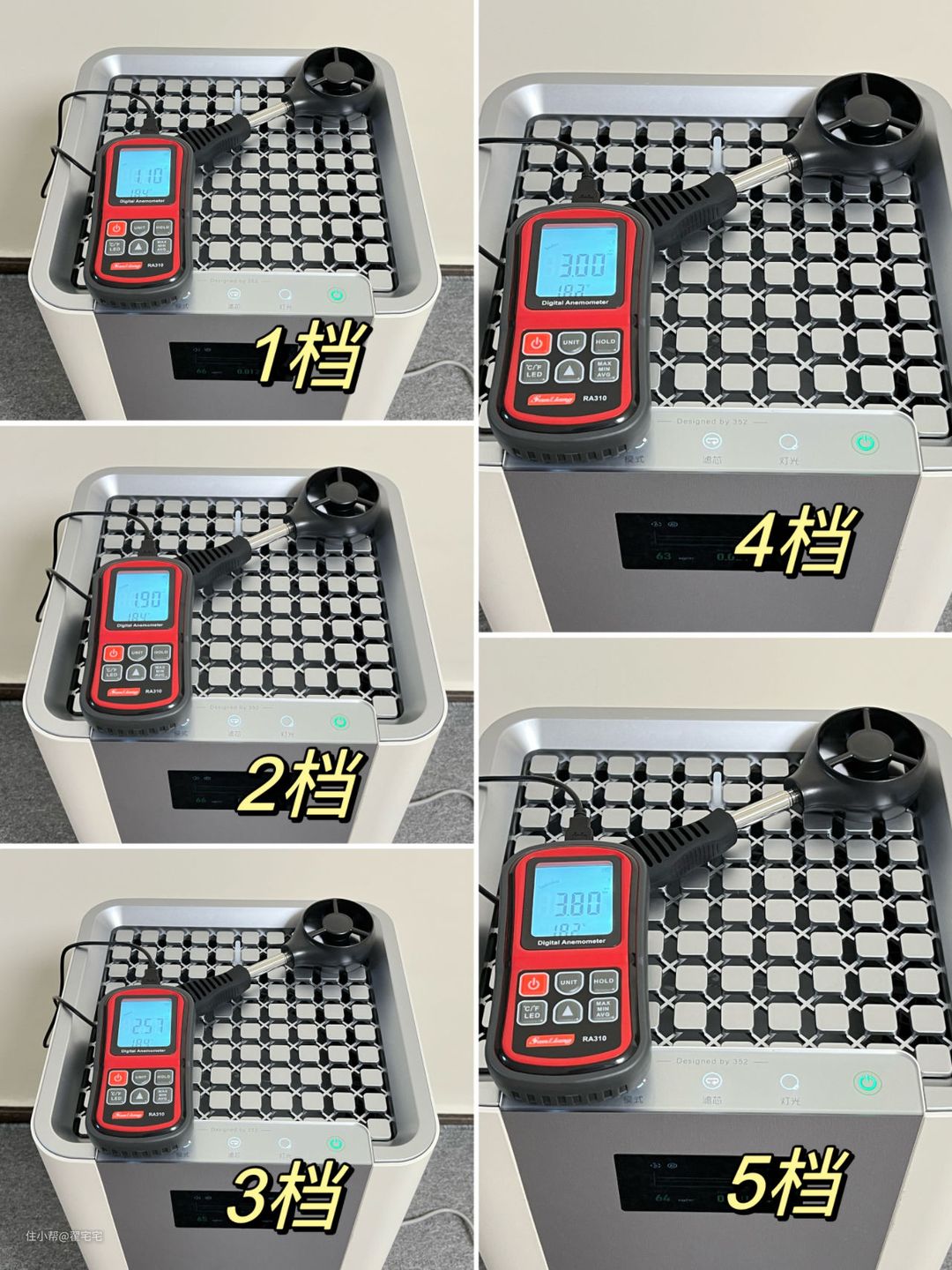 2-3档噪音对比环境噪音没有太明显提升,4-5档由于风速比较快,所以噪音也会大一些: