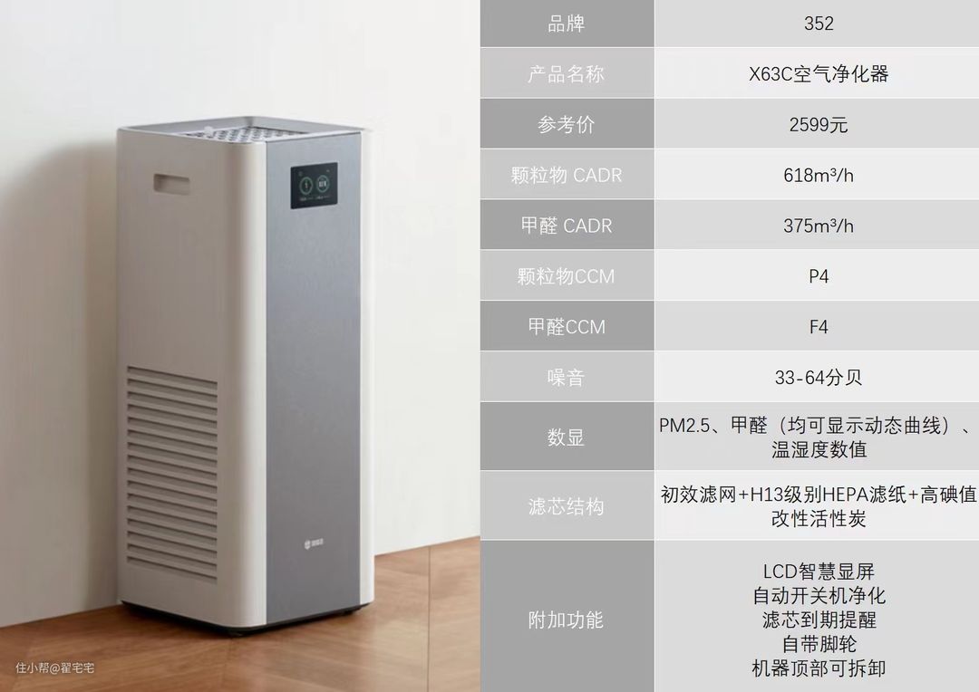 5、经过近半年的体验和实测352 X63C空气净化器的各方面指标和性能都处在一个中上水平,预算在2000-3000区间,小空间卧室、书房、儿童房等需要高效除甲醛和除霾的话,可以考虑购买。