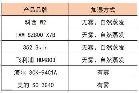 这6款产品的加湿方式如下: