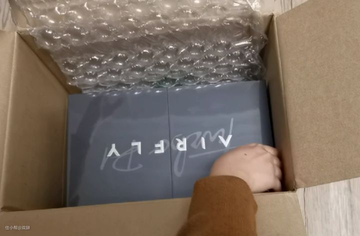 得到物流信息通知取货的第一时间,就去拿快递了,一刻都不想耽误的那一类。外包装使用的是印有AIRFLY的品牌名字定制快递箱子,包装箱整体完好无破损,密封性也好。