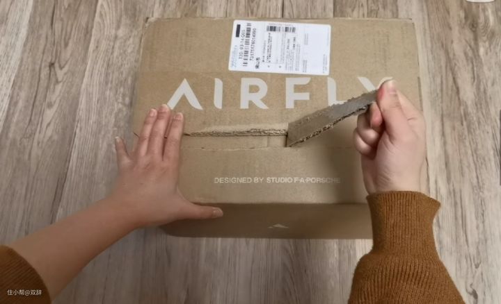 接下来就是拆箱了,AIRFLY在包装箱上直接印有可撕拉的条缝设计,让拆快递变得更方便更快了!