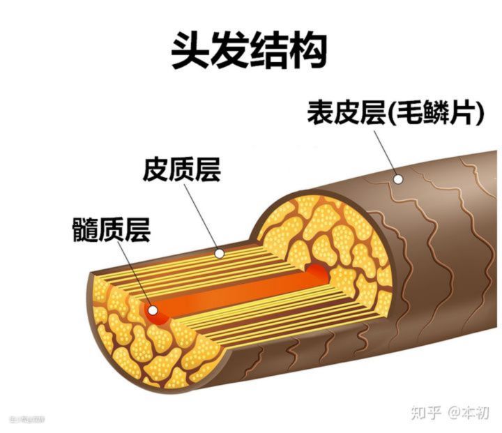 表皮层:由特化角质组成,以鳞片状堆积头发的最外层,大约是6-12层,占头发体积的10%-13%,为最外层